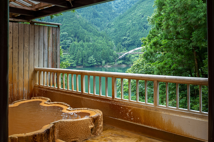 ダム湖の湖岸に、ひっそりと佇む温泉