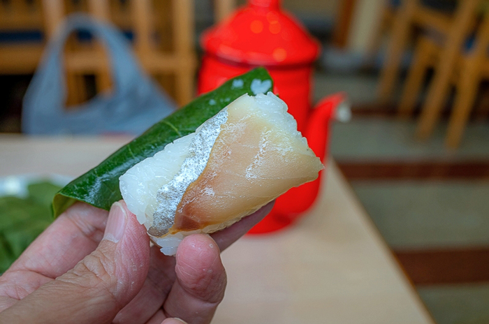 素朴ながらも、美味しい柿の葉寿司を頂く