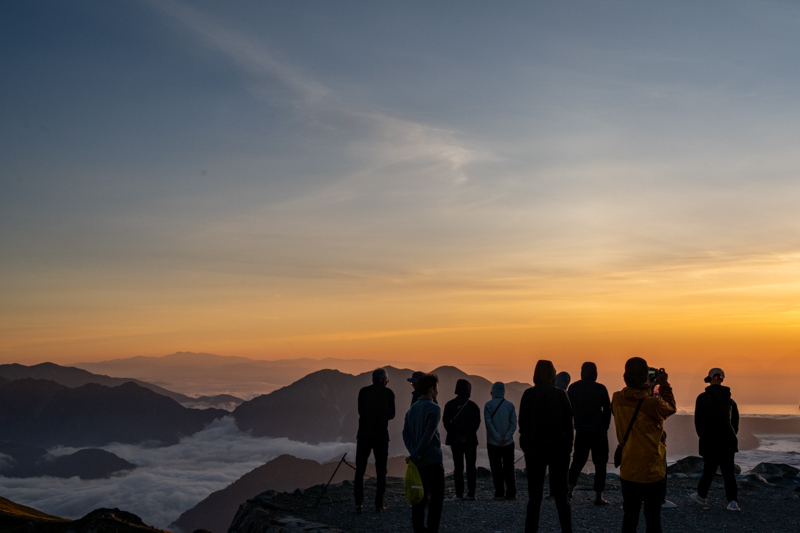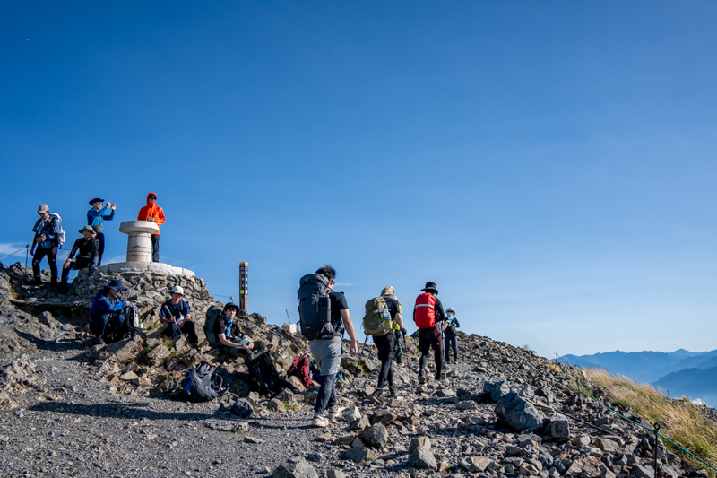 暑さと苦しさから解放された笑顔で溢れる山頂では、早くも風の冷たさに震える頃