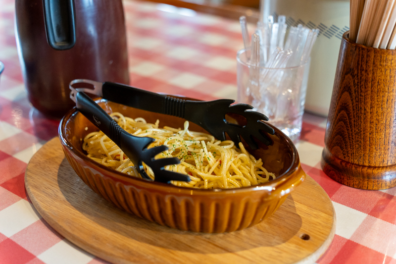 各テーブルにひとさら置いてくれてるパスタは食べ放題