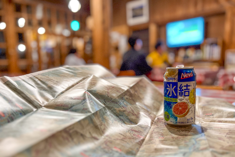 食後は地図を肴にだらだらと飲んでると、雨雲が消え去ったようで