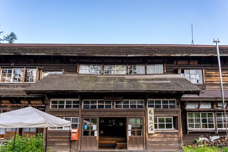 長蔵小屋前は新装されたビジターセンターがロープによって立入禁止