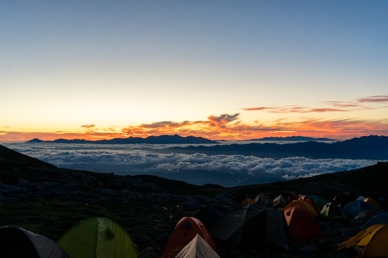 寒さに震えながらテン場に立って朝焼けを待つ、これも夏の情景のひとつだ