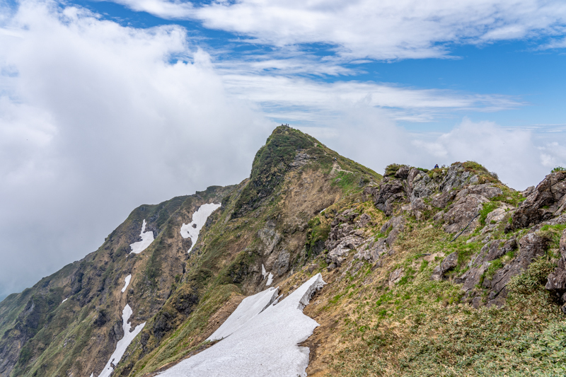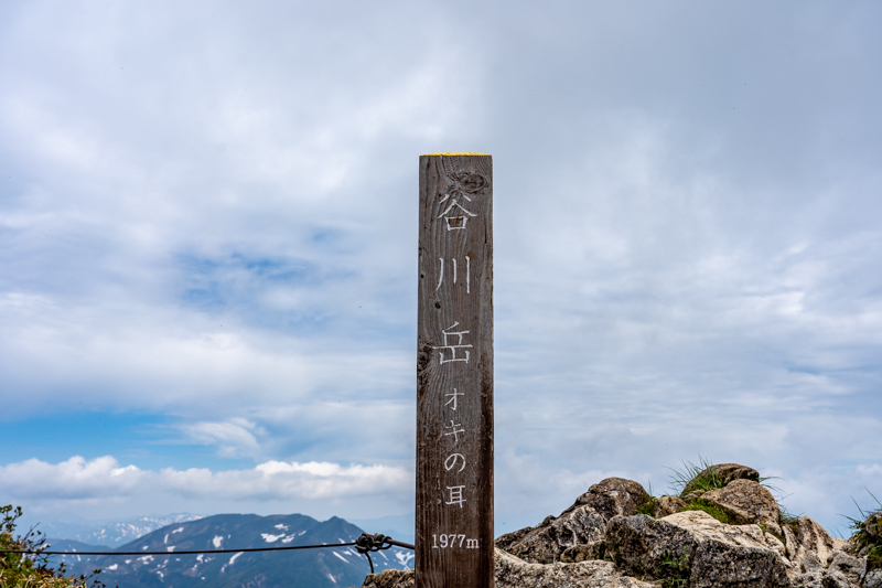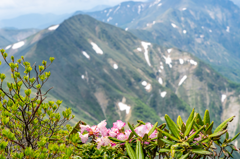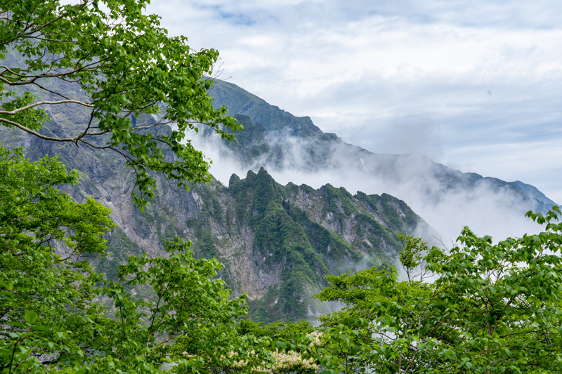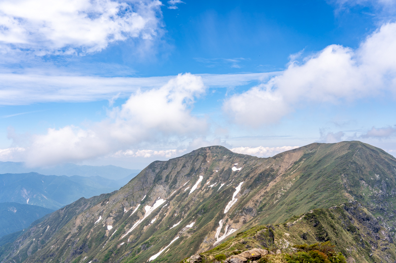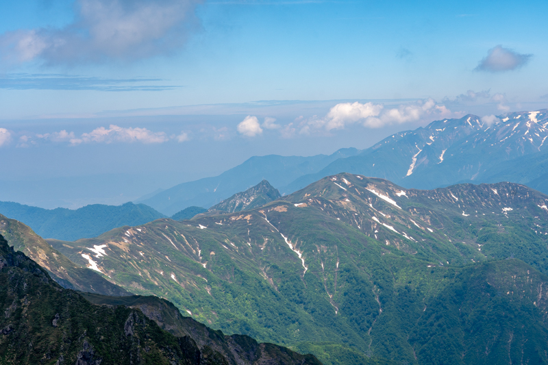 ふり返ると笠ヶ岳、朝日岳、白毛門