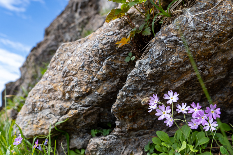 岩場の影にひっそりと咲く花たち