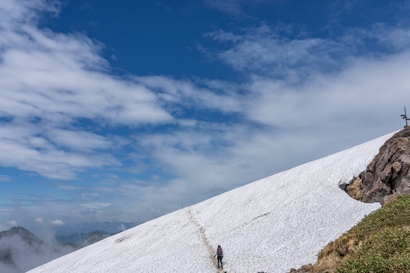 陽射しが照り付ける尾根をジグザグに進む