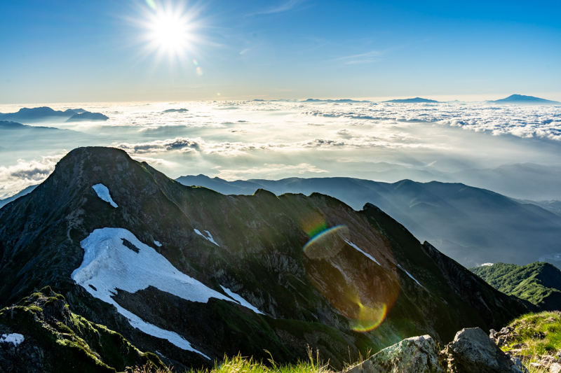 その向こうに並ぶ白馬、小蓮華、あの小さく尖るは朝日だろうか