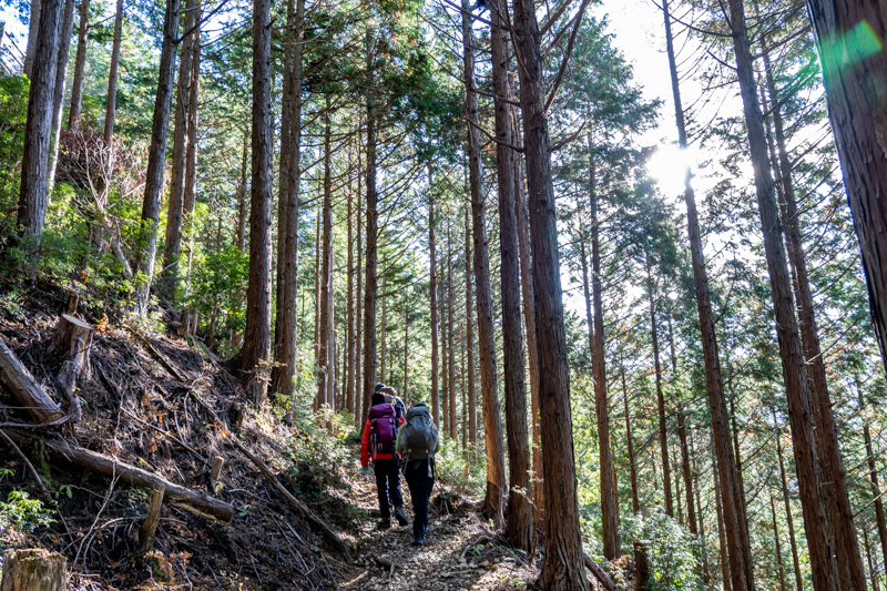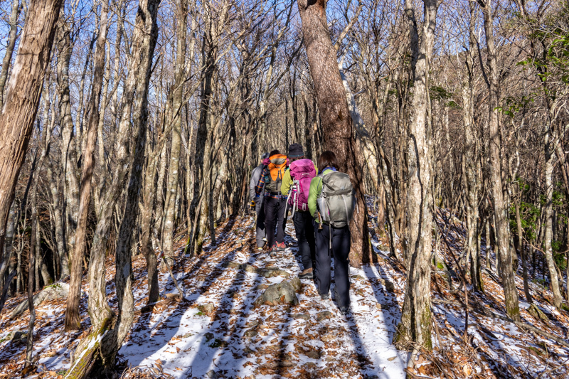 早くも樹林の合間から白い大峰が見え始めるとテンションUP