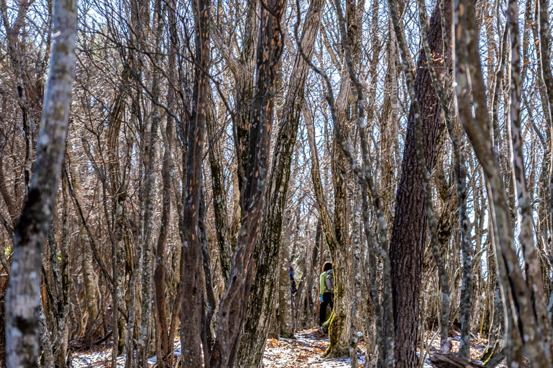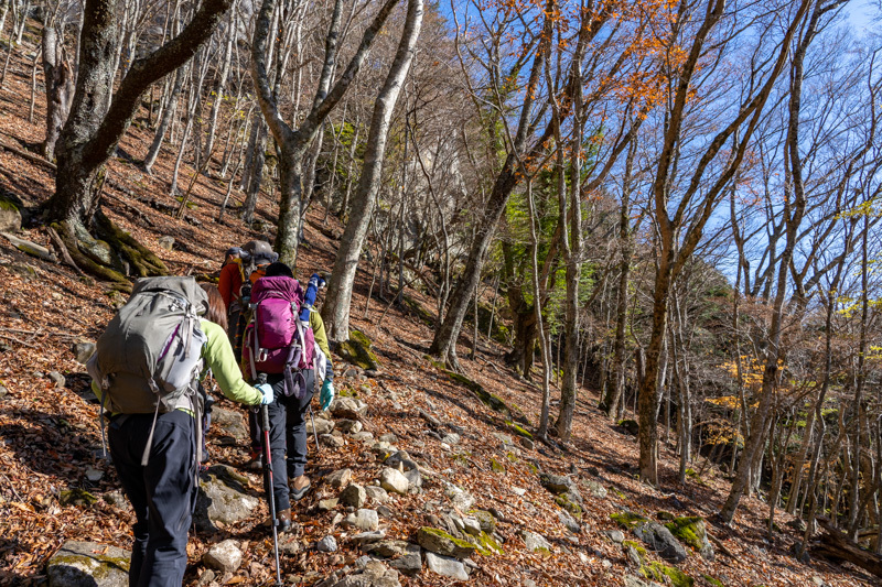 ススキの揺れる中を一度下りきると、樹林の中へ