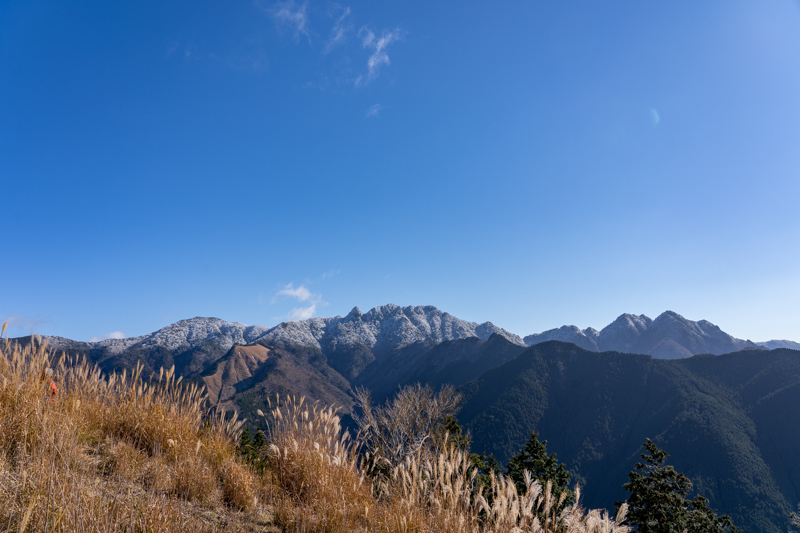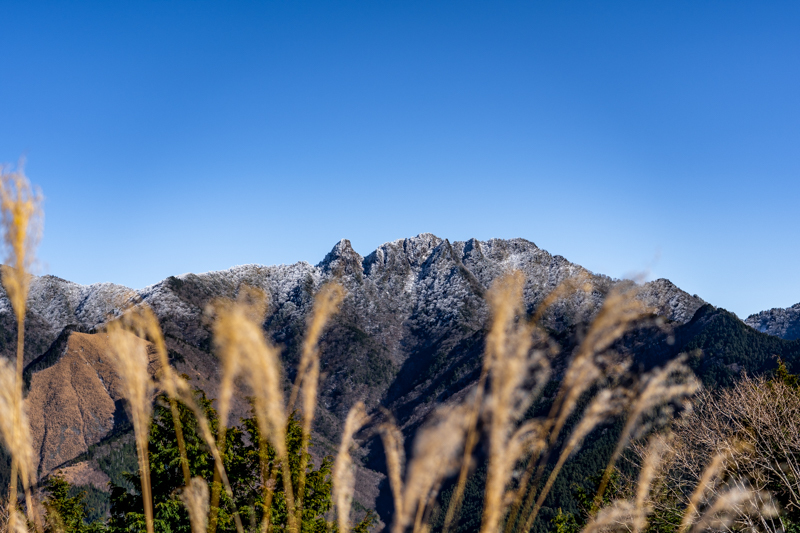 秋の青空に輝く大峰