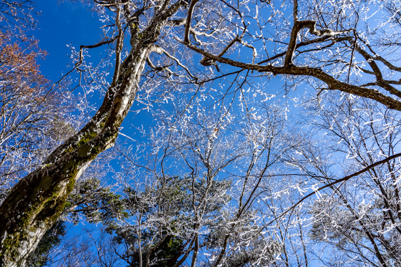 見上げると梢は凍てついている