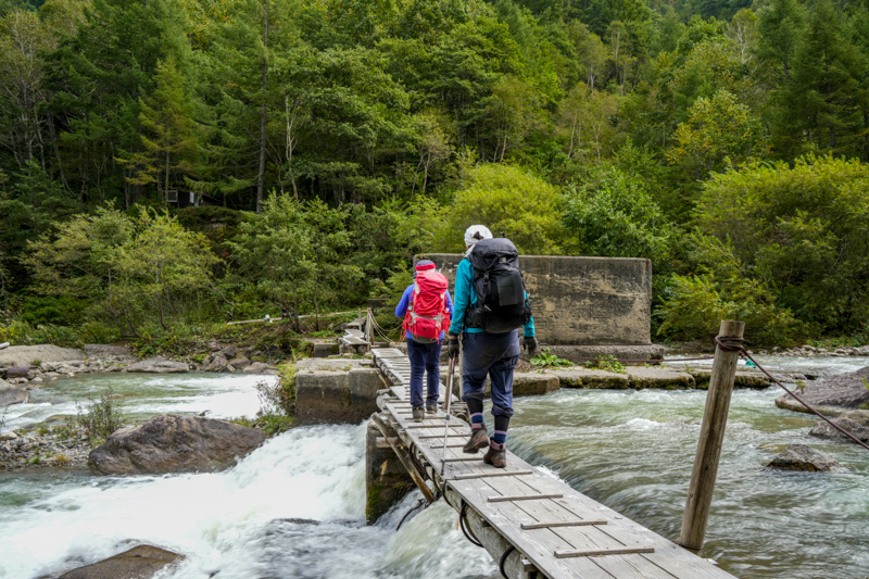 仙人温泉小屋は、一か所渡渉するところがあるのですが、そこが崩壊して
