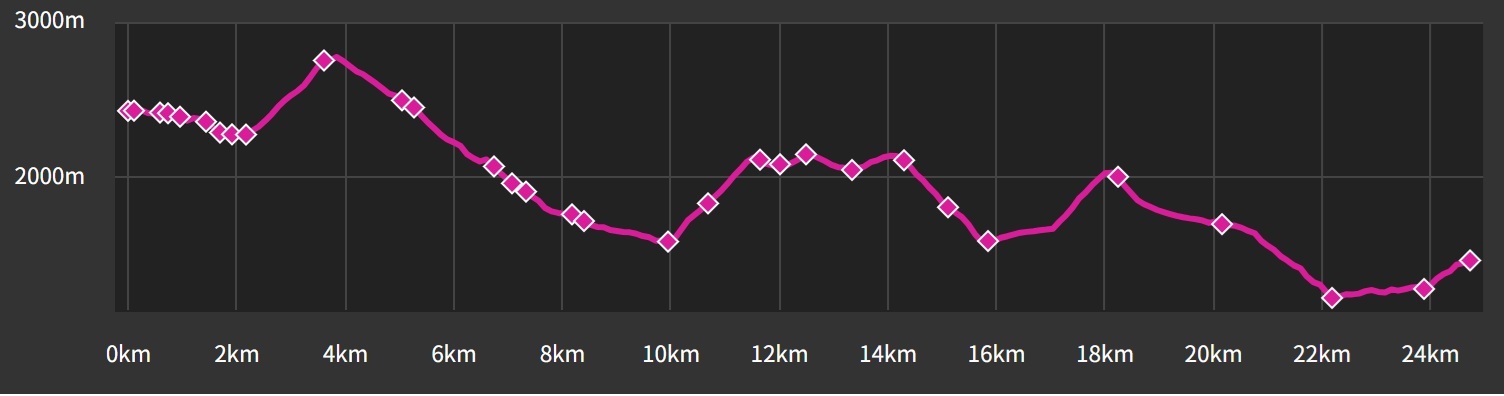 登り:2,172m 下り3,126m 距離25Km