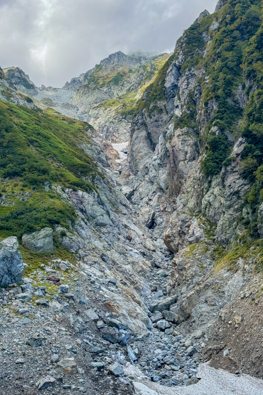 剱沢は過去に一度雪渓の上を歩いただけ、夏道のイメージは掴めないまま下り始める