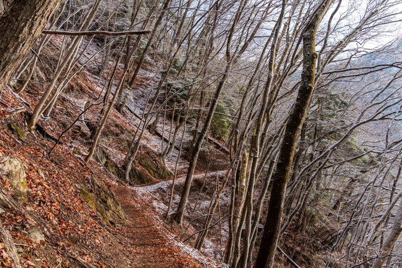 曇天の中を急ぎ足で下山した