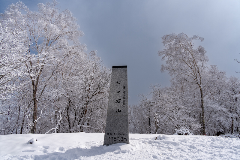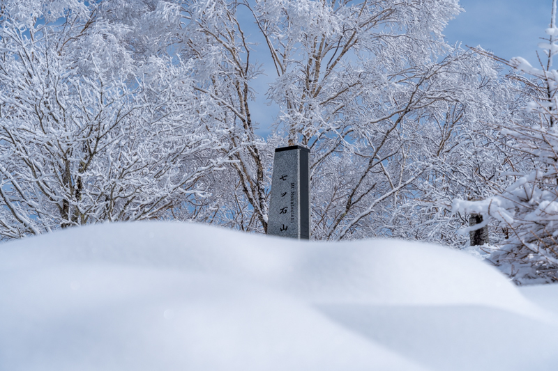 七ツ石山からは、積雪量もぐっと増えて、完全な雪山の姿に