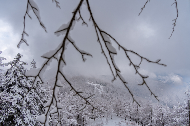 そして、霧氷と言うか、枝の着雪が溶け落ちてぽつりぽつりと落ち始め