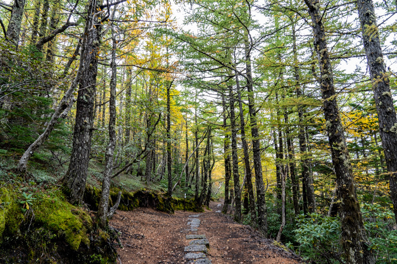 その駐車場をくるりとターンすると、御庭駐車場まで戻って御中道を歩き始めた