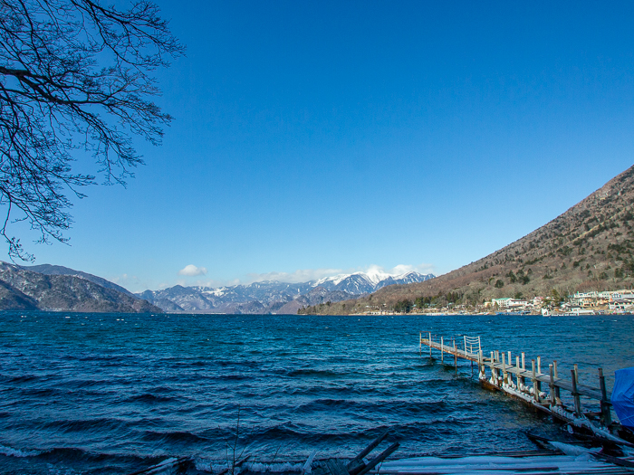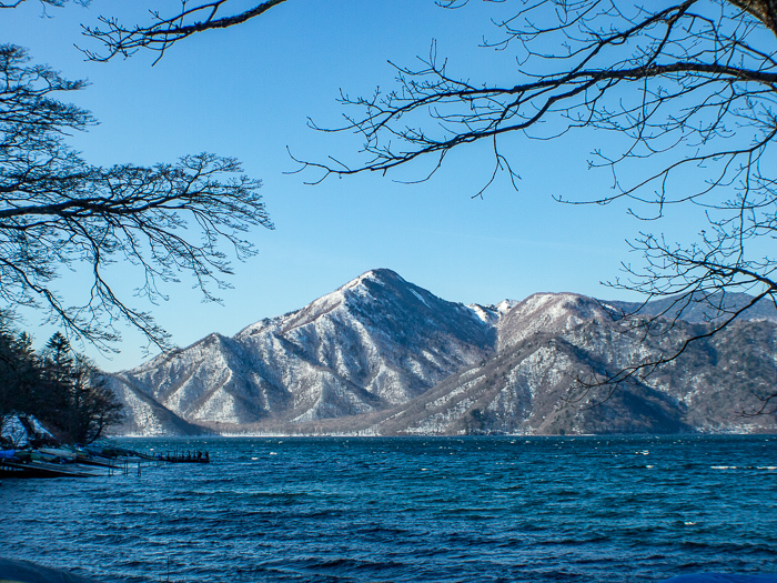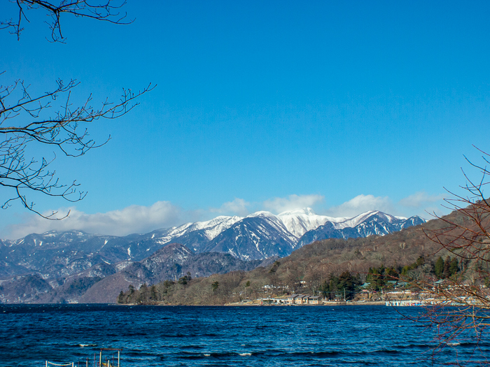 明智平からの男体山の展望には驚くほど雪が無かった