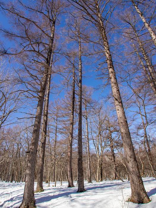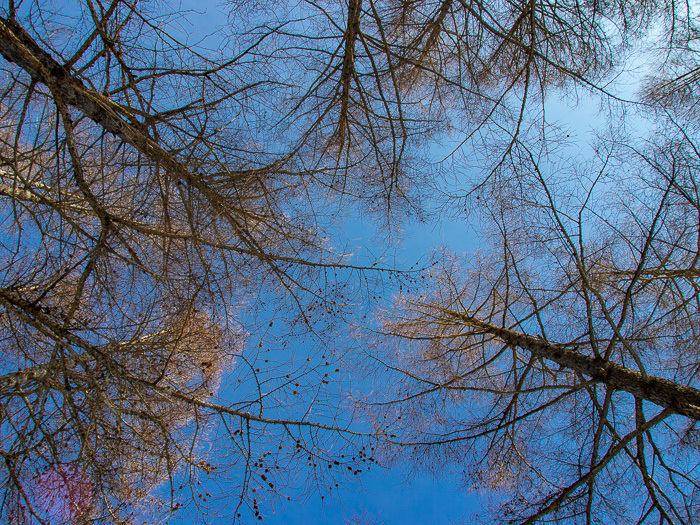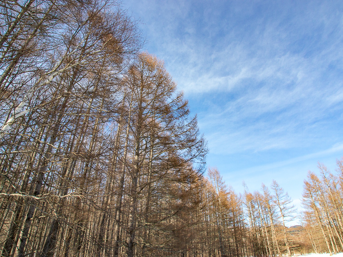 なんて、つぶやきながら青空にまっすぐ伸びるカラマツを見上げる