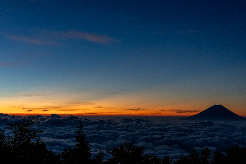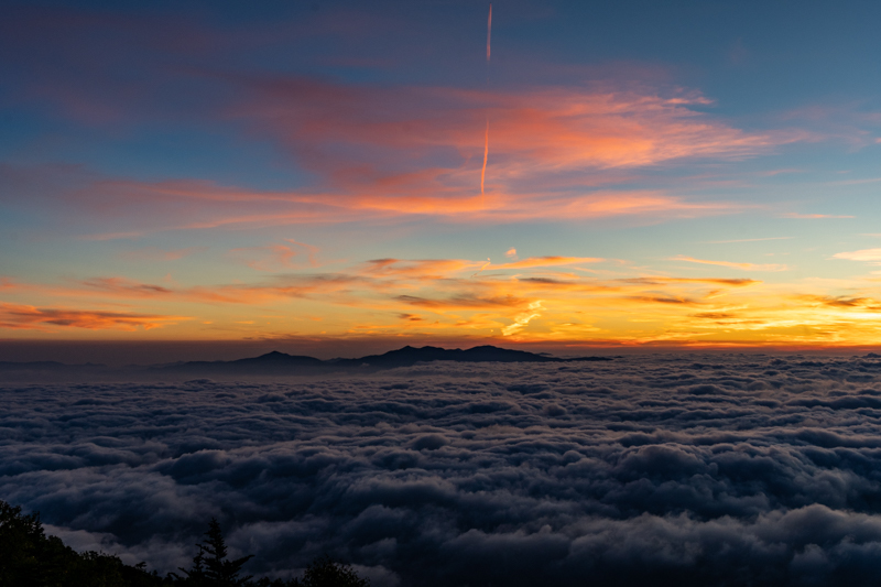 この青空と朝焼けと雲海があれば、どの山でも最高に満足でしょう