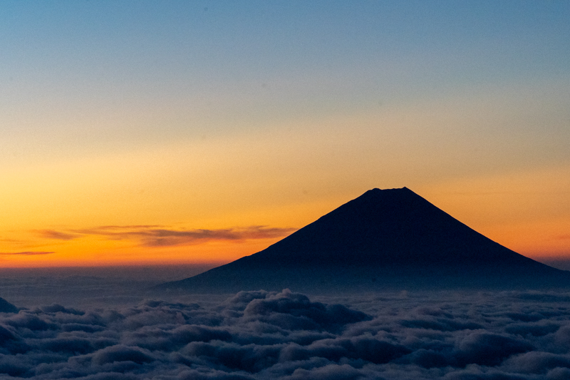 どこまでも果てしなく続く雲の波に、なんだか威圧感さえ覚える富士の佇まい