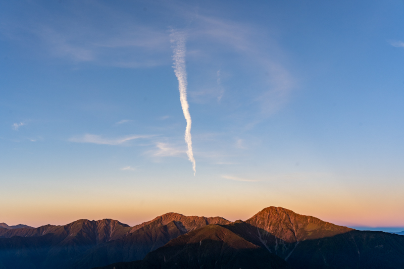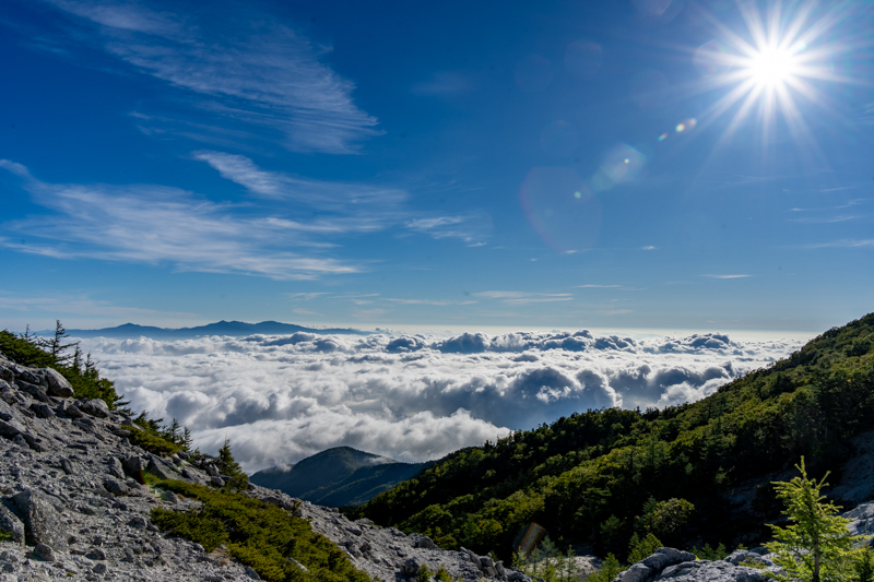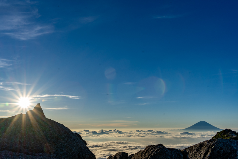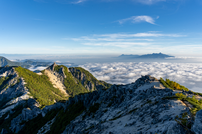 ピークからは、新たな夏の日を喜んでいるような白峰三山の姿