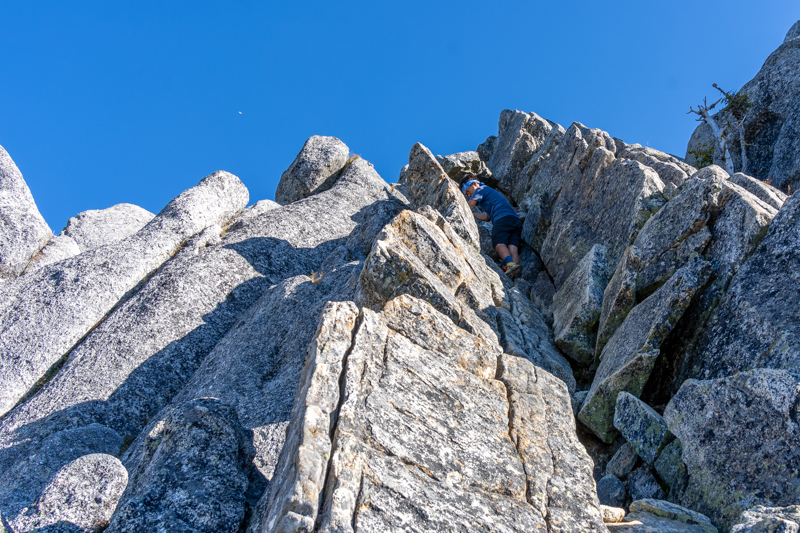 登り返したアカヌケ沢の頭では、人ひとりが座れるだけの日影を確保
