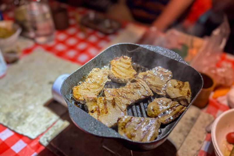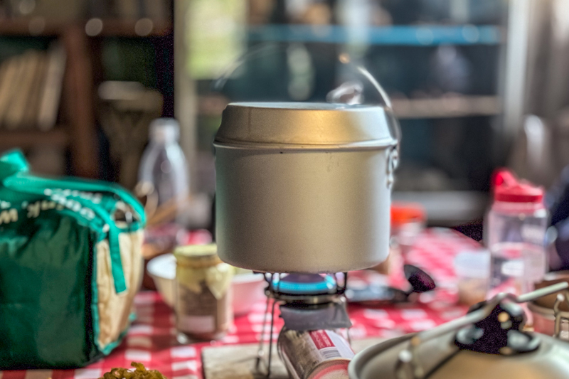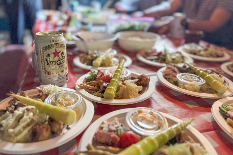 たくさんの食材とアルコールを担いだ足取りは重いが