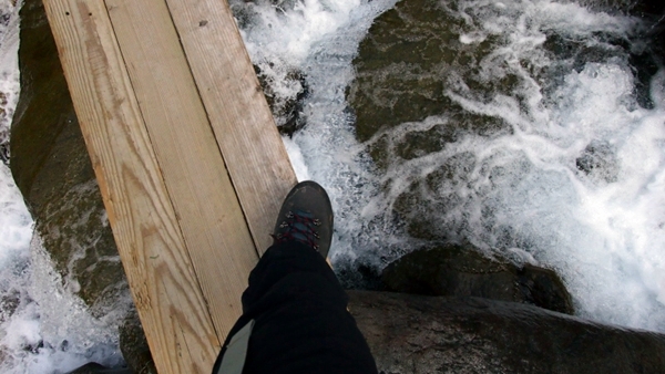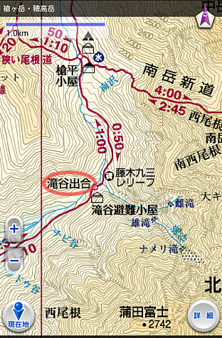 いくつか沢を渡るけど、いつも橋が流される滝谷があるのよ。