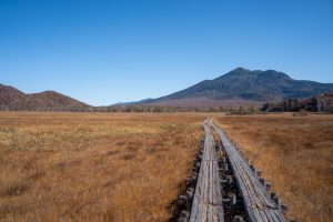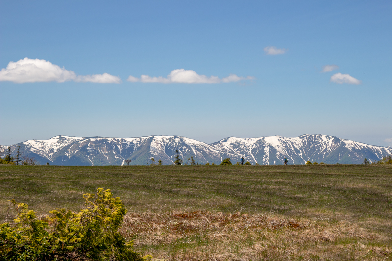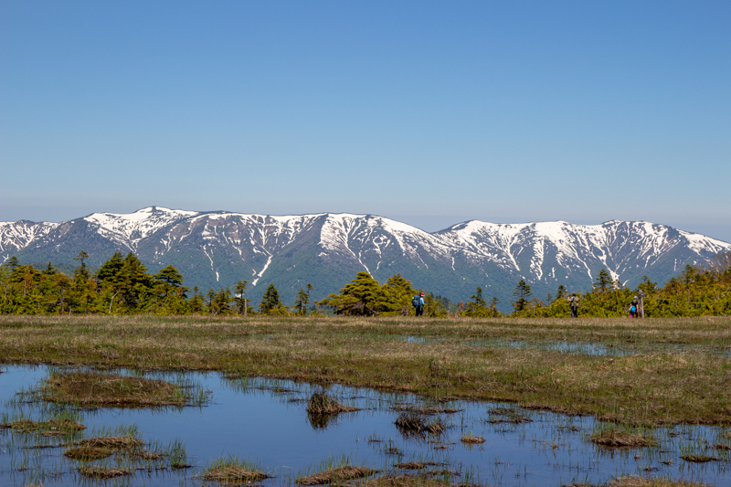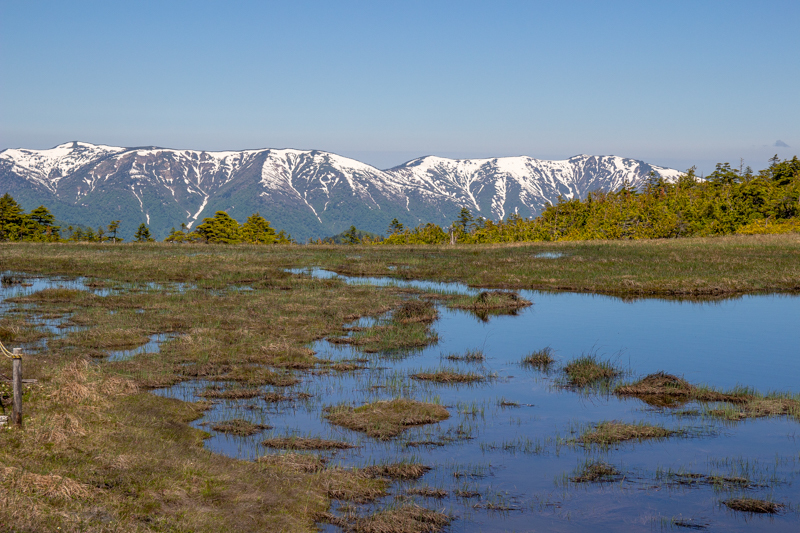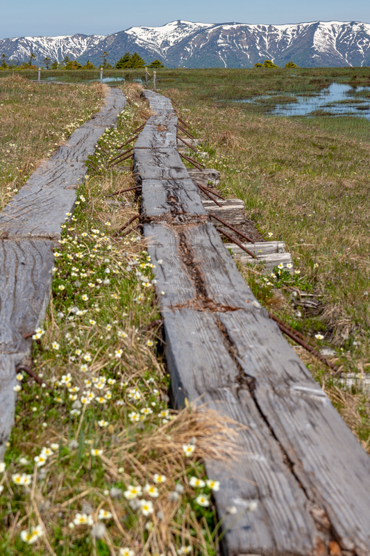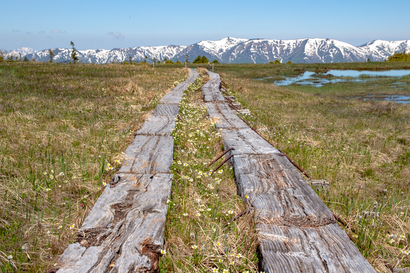 木道の先の雪山、最高ですね。