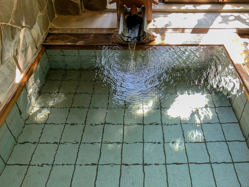 お湯がきらきらと輝く小さな湯舟