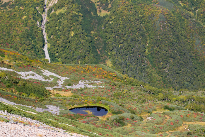 紅葉の進んだ五郎池を見下ろしながら、黙々とひとり