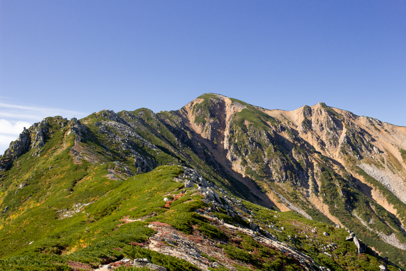 ハイマツと砂礫の間を縫うように、最後の登りを詰めると