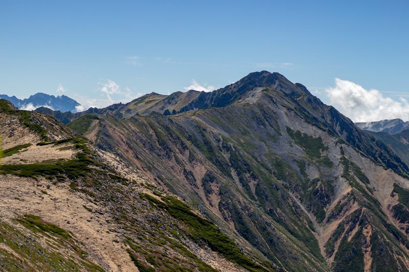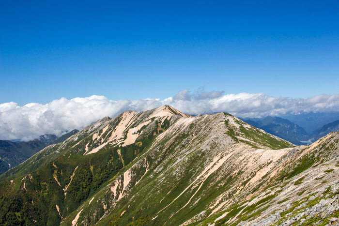 左手には、槍ヶ岳から野口五郎、ふり返ると針ノ木岳