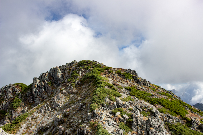 P2814前後の岩稜では、振り向き振り向き、石垣君を励まし