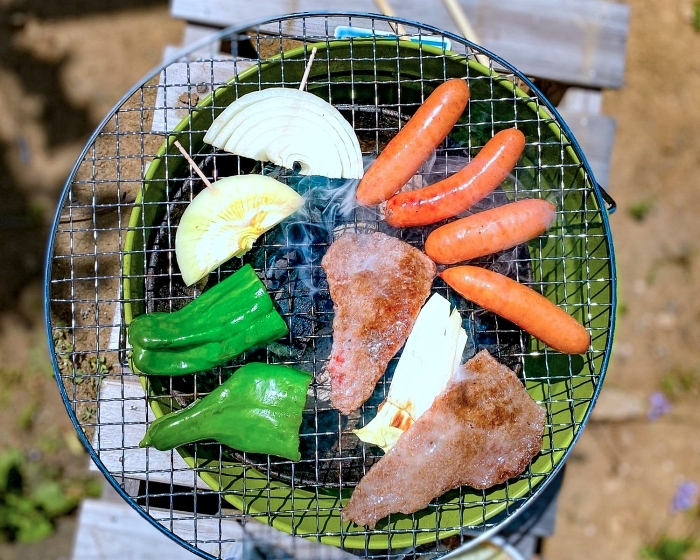 何の気兼ねも無く、七輪でお肉をじうじう、昼間っからビール飲み放題!