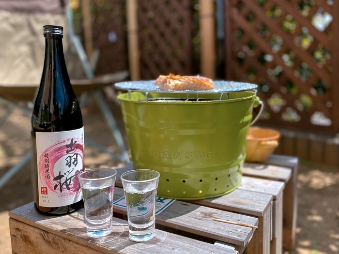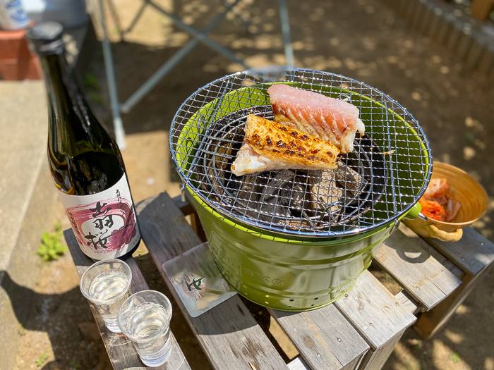 春風に吹かれながら、夫婦といえ間に七輪の距離を置いて