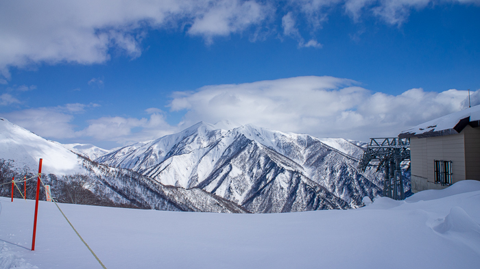 白銀のゲレンデ、手が届きそうなところに流れる雲が早く来いと呼ぶ
