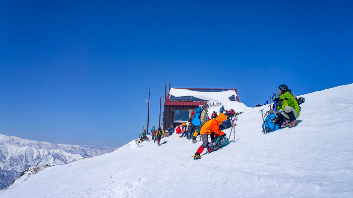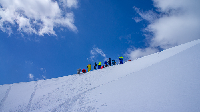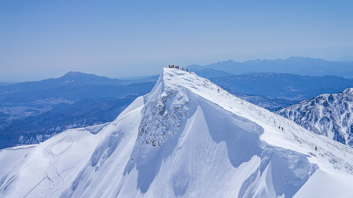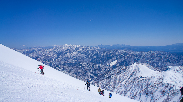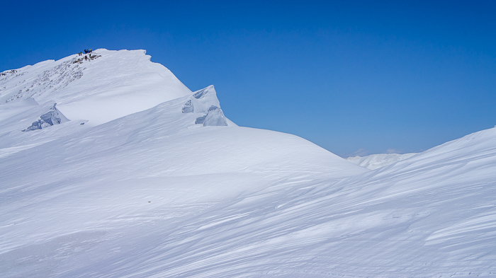 山スキーヤーたちに挟まれて、追いつ抜かれつしながら尾根を進む