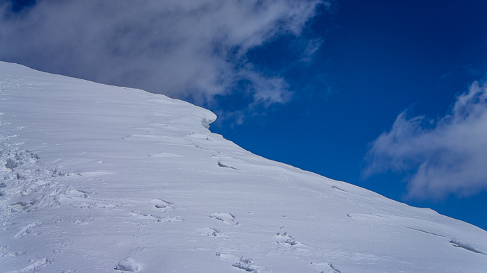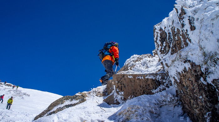 トマの耳からの細尾根、ここはピッケル無しでは歩けない