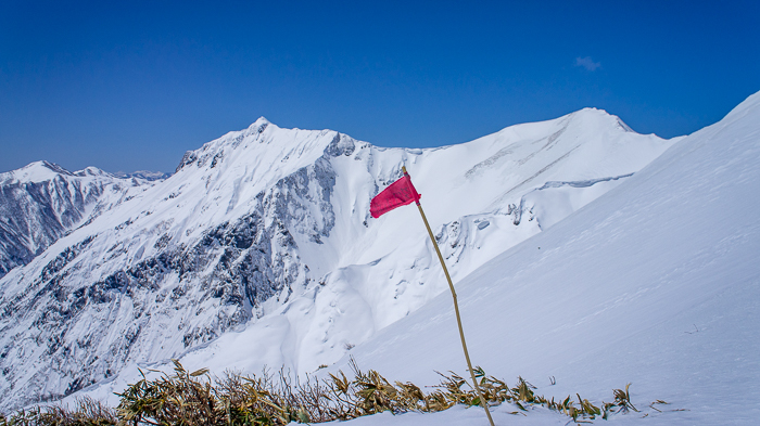 雪の残っている間に踏むぞ、あの二つのピークを踏むぞと決めた