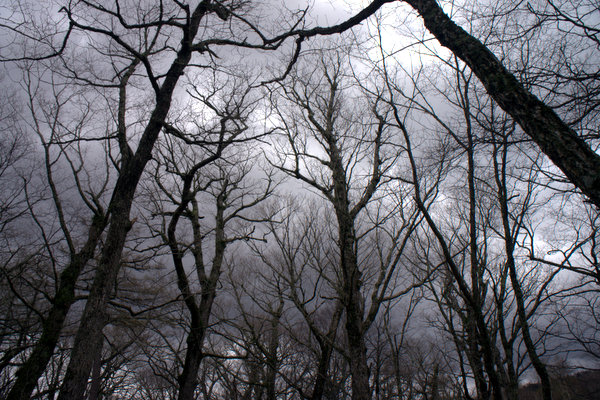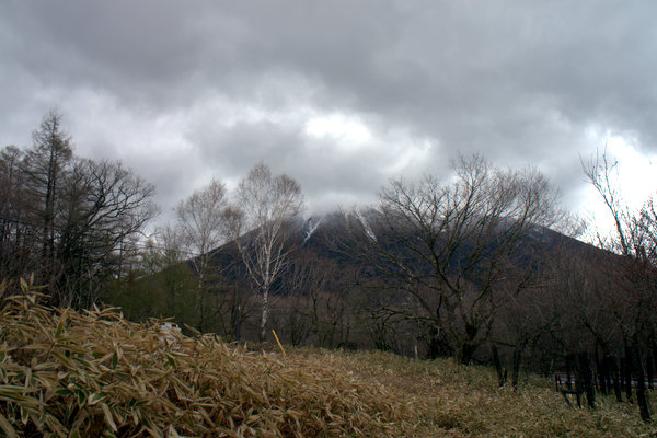 どんよりと低く黒い雲、未だ冬枯れのカラマツ・・・なんと寒さを誘う風景だろうか