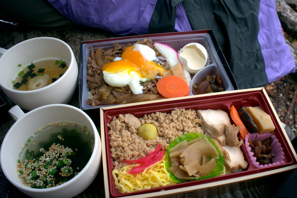 グランドシートに包まって、ガタガタ震えながらも美味しいランチ