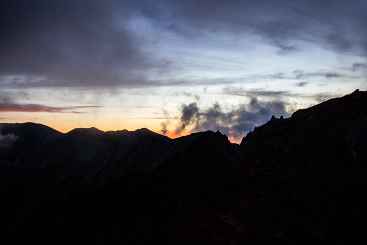 まだ暗い中、夜半から吹く強風に煽られながら進むと東の空が紅く染まり始めた