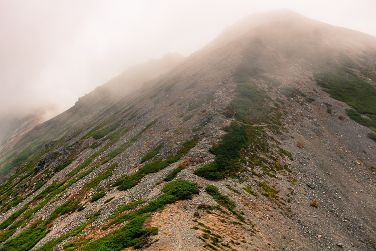 東沢乗越辺りから、ときおり雨は弱くなるが、止むことはなく