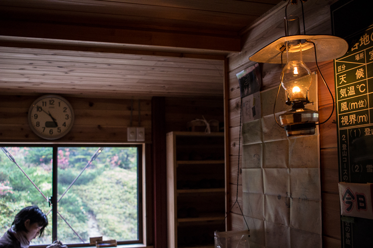 高天原山荘の受付で、小屋番の女性と、悪天候続きなど会話する