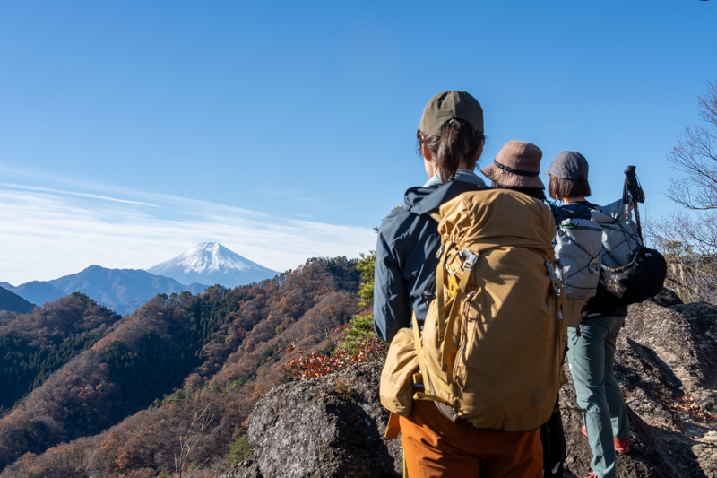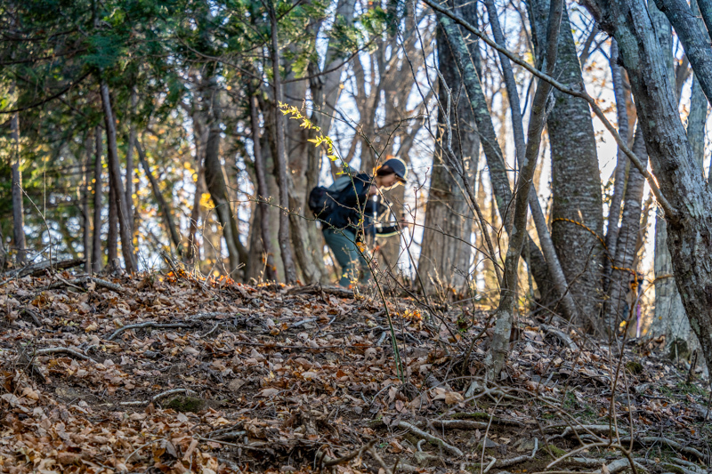 後ろに続く山ガールたちを慮って落ち葉を蹴散らしながら先頭を歩く
