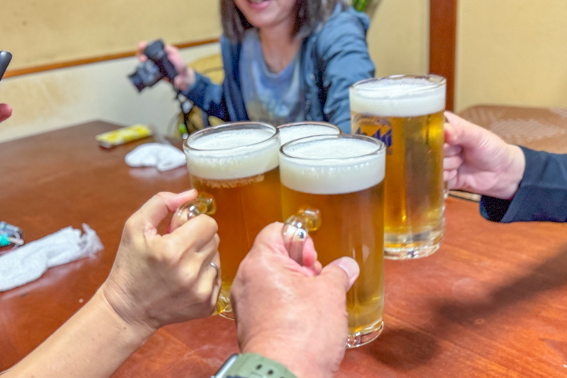 そして本日のゴールである「うづき」へと無事下山するとさっそく反省会のはじまり