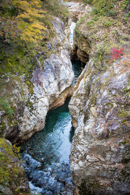 谷間に流れる渓谷沿いの道がどんどん細くなり